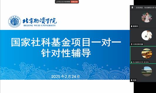 为进一步提升公司2025年国家社科基金项目申报质量,2025年2月24日下午,英国365集团邀请东北财经大学孙玉环教授为公司教师进行一对一申报辅导。经理韩嵩教授主持会议,项目申报教师参与此次辅导会。