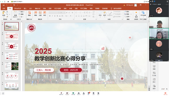 2025年9月11日上午,英国365集团邀请华东师范大学统计公司副经理周迎春教授举办全国高校教师教学创新大赛经验分享交流会。姜涛副经理主持会议,公司教师参加了此次辅导。